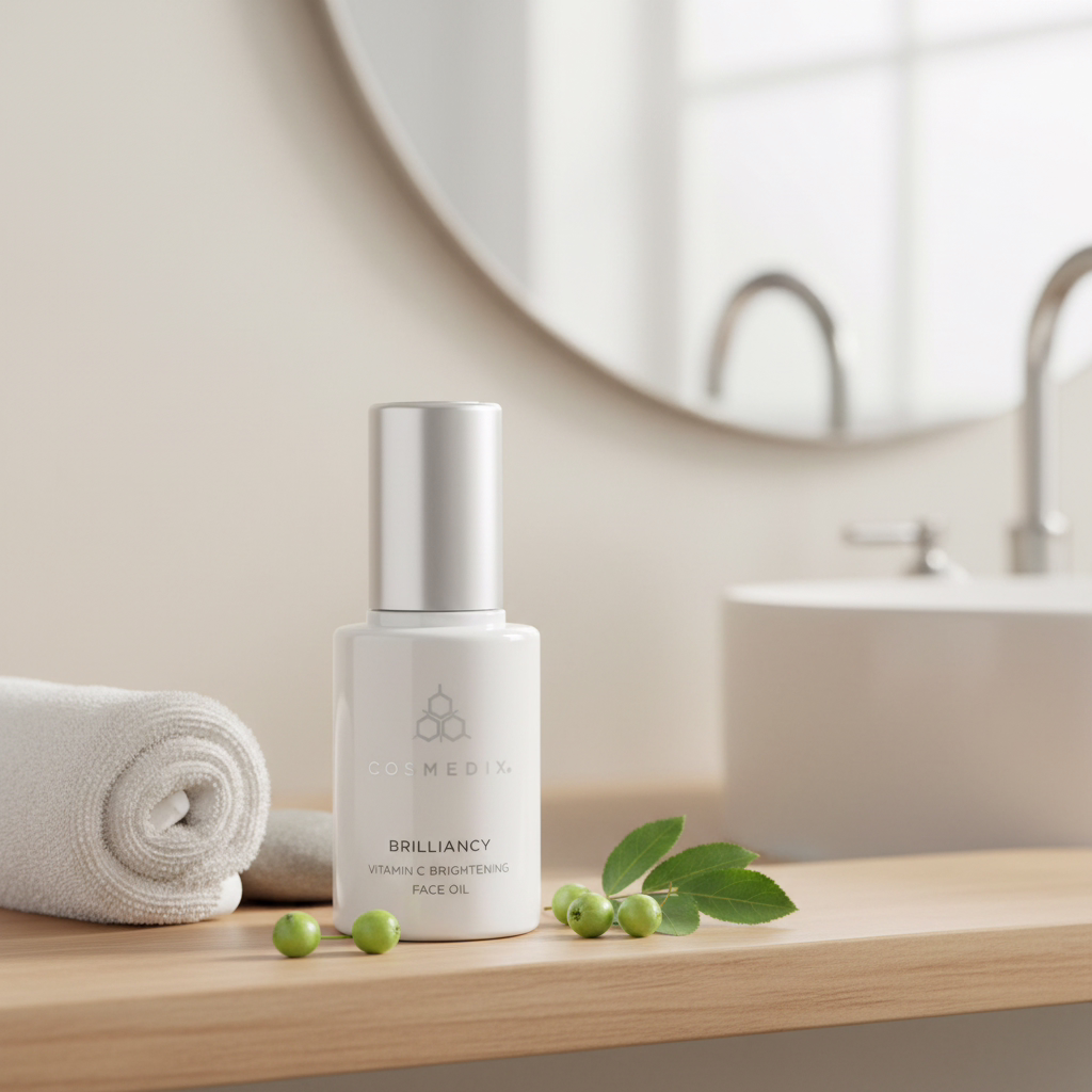 The CosMedix Brilliancy Vitamin C Brightening Face Oil is crafted to provide deep hydration while improving your skin’s natural radiance. This facial oil combines the soothing properties of Elderberry fruit extract with age-defying plant-based ingredients, targeting dark spots and uneven skin tone to reveal a clearer complexion.