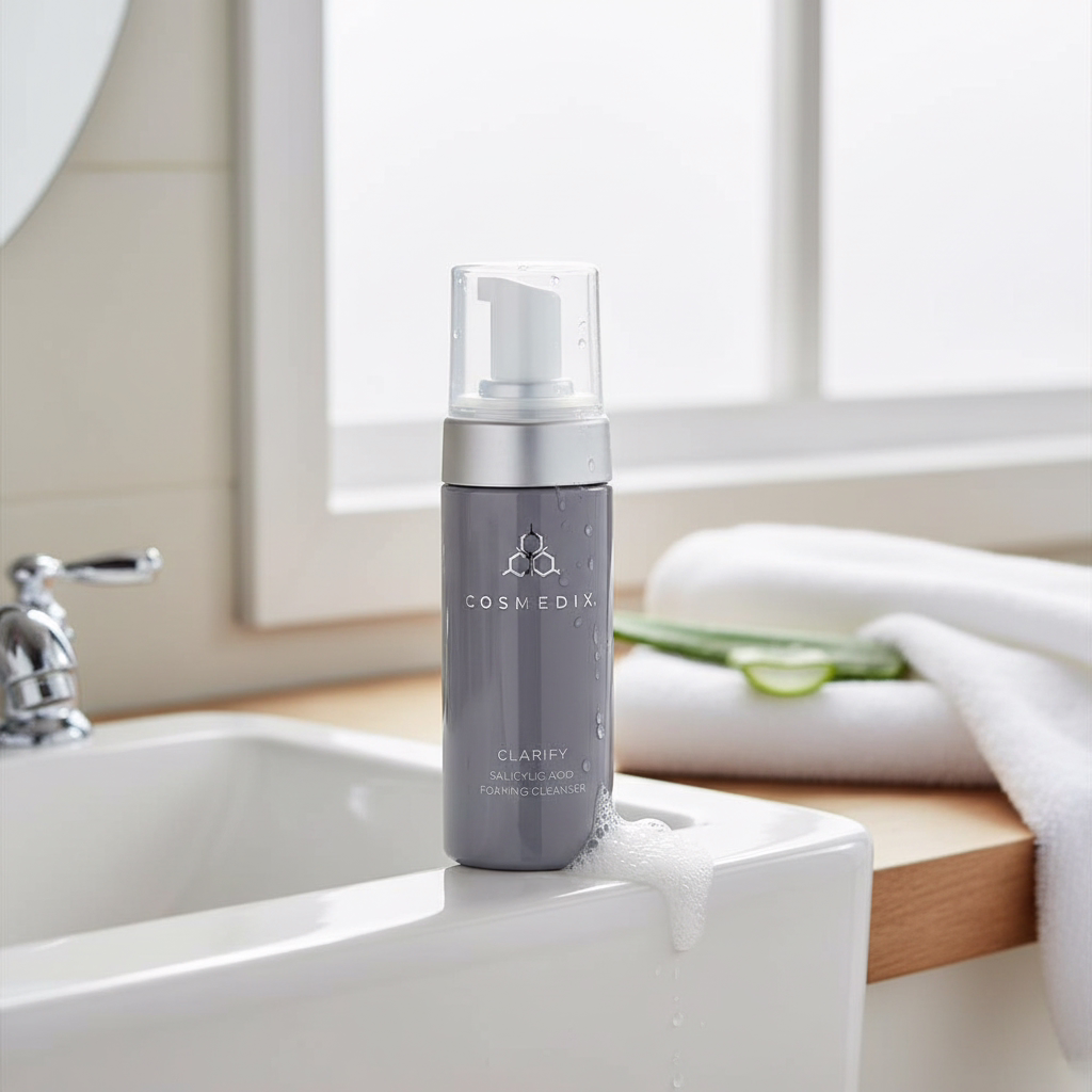 The CosMedix Clarify Salicylic Acid Foaming Cleanser is crafted to cleanse deeply without disrupting your skin’s natural balance. This translucent, water-based foam tackles makeup and impurities that clog pores while keeping your skin calm and hydrated.