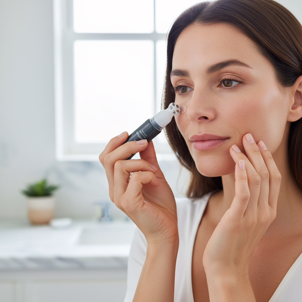 - Cooling Metal Rollerball: Provides a gentle massage that soothes and lifts the under-eye area immediately.