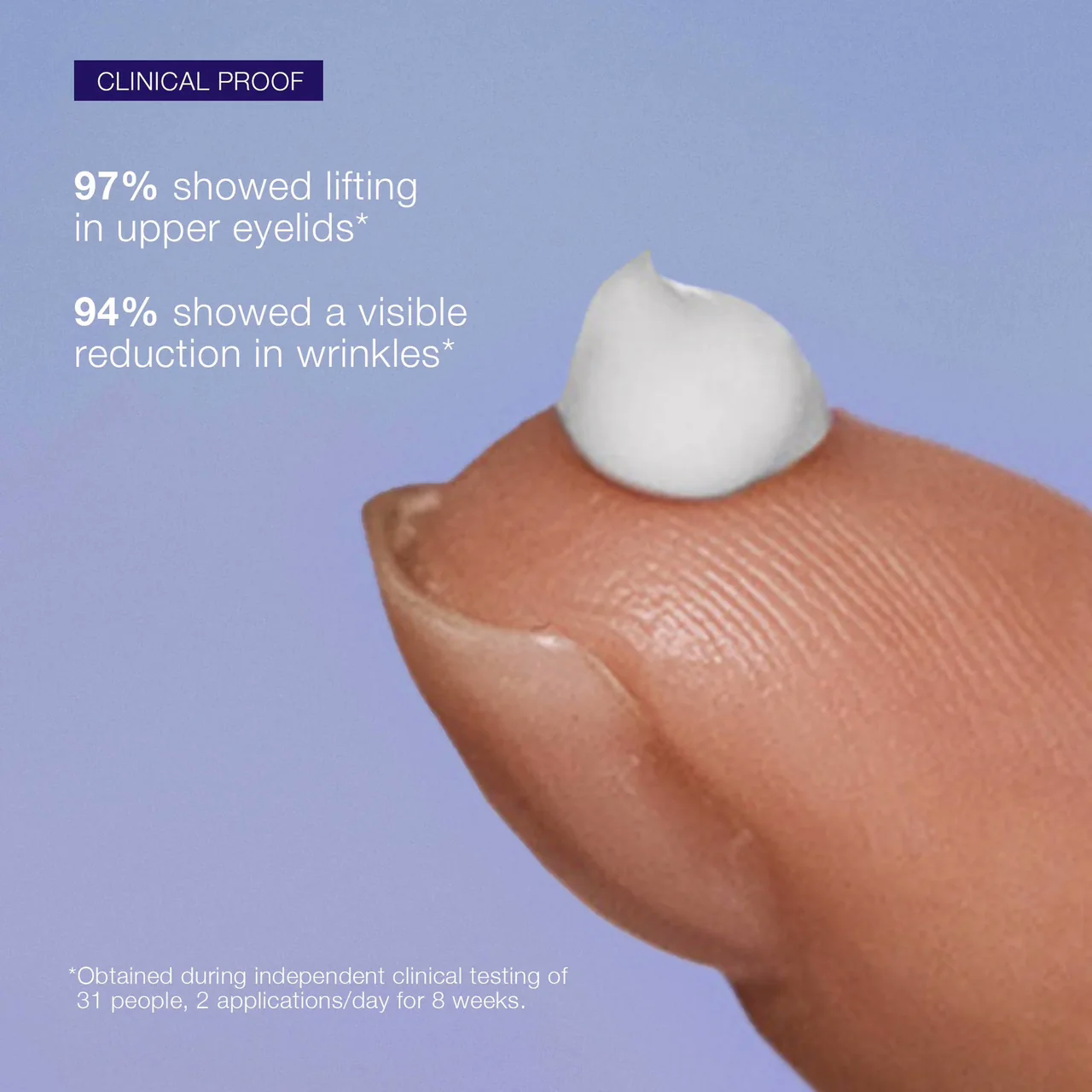 Visibly lifts and firms the eye area, including the eyelids