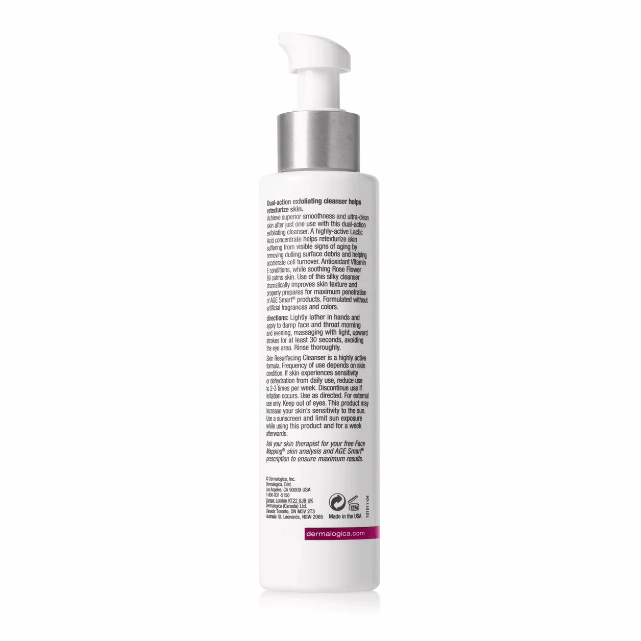 Dual-action exfoliating cleanser helps retexturise ageing skin. Achieve smooth, ultra-clean skin with this highly-active, two-in-one cleanser and exfoliant. Lactic Acid concentrate helps retexturise skin showing signs of ageing by removing dulling surface debris and helping to accelerate skin cell turnover. Antioxidants condition skin while Rose Flower Oil refreshes the senses. Use daily to dramatically improve skin texture and properly prepare it for maximum penetration of AGE Smart products