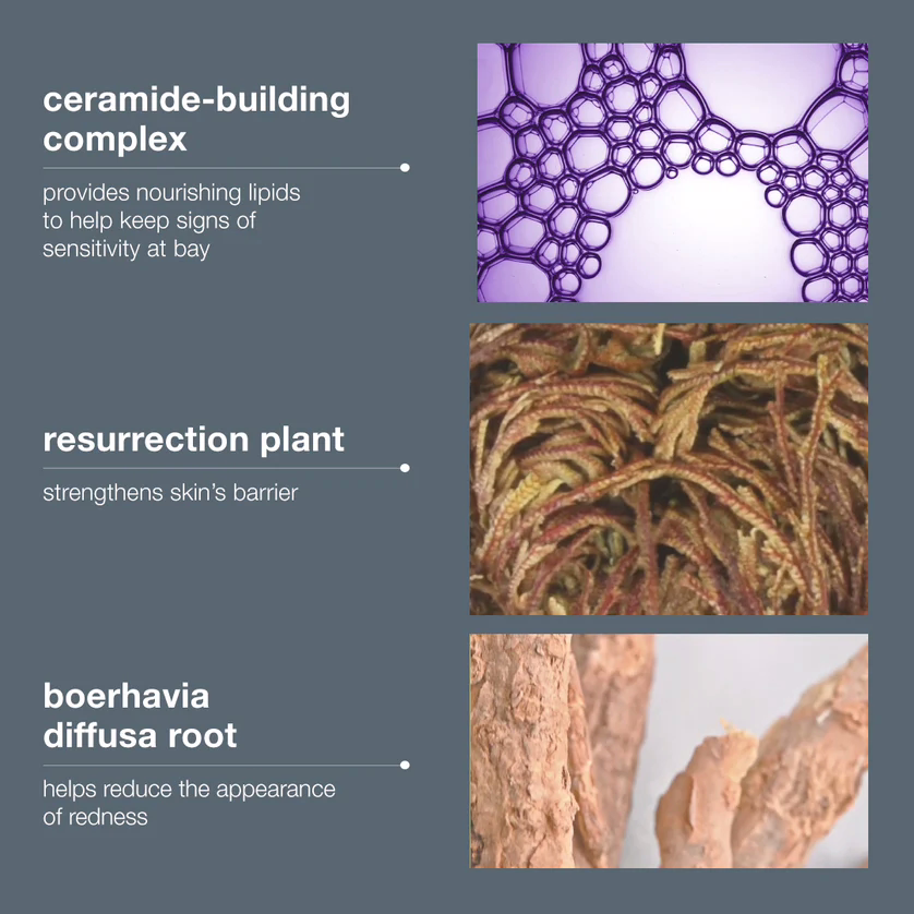 Formulated with a soothing blend of Resurrection Plant, Tasmania Lanceolota, and Boerhavia Diffusa Root, it nourishes and revitalises tired, reactive skin. A Ceramide-Building Complex locks in moisture and supports barrier repair, while Lactobacillus Ferment and Gica help skin retain hydration and balance moisture levels. The result is calmer, healthier-looking skin that feels comfortable all day.