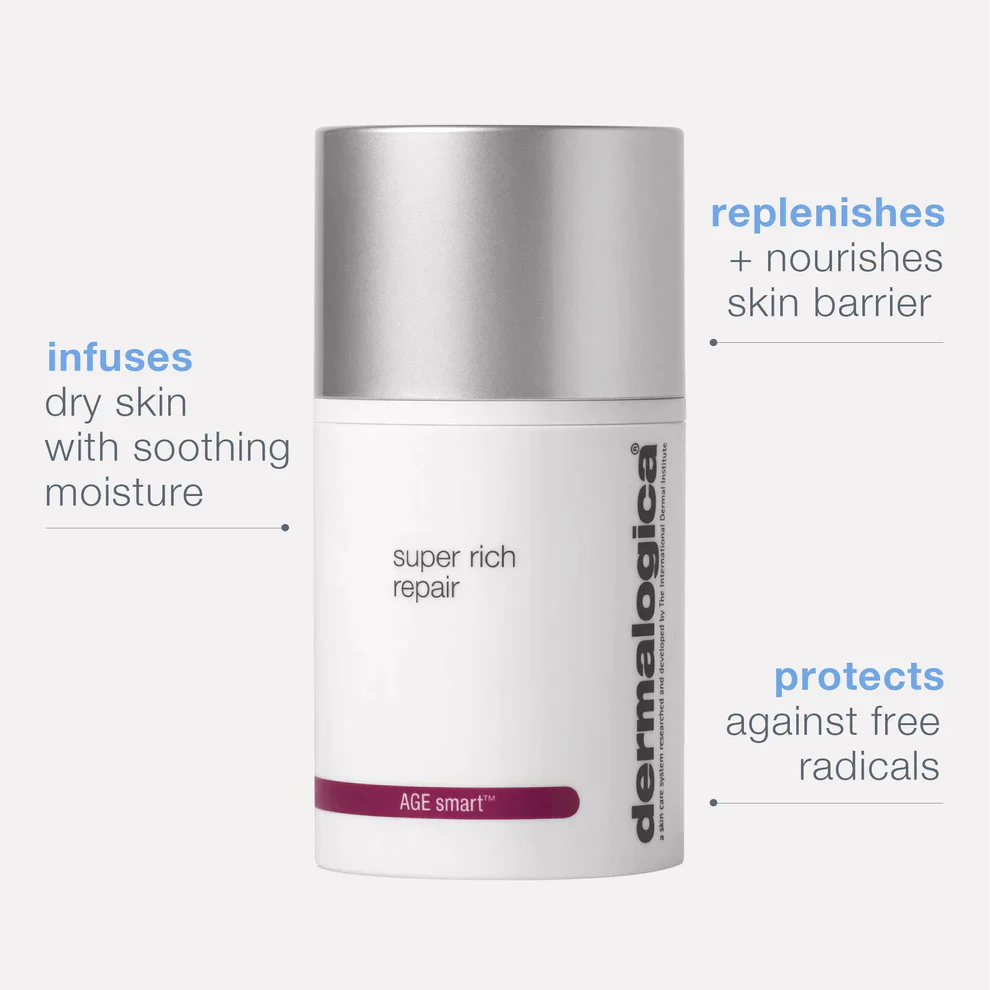 Deeply nourishing skin treatment cream for chronically dry, dehydrated skin. Heavyweight cream helps replenish skin’s natural moisture levels to defend against environmental assaults. Powerful peptides and an acid-free smoothing complex support skin resilience and tone. Shea Butter and Oil of Evening Primrose help replenish and hydrate, while antioxidants help defend against free radical damage. Store at room temperature.